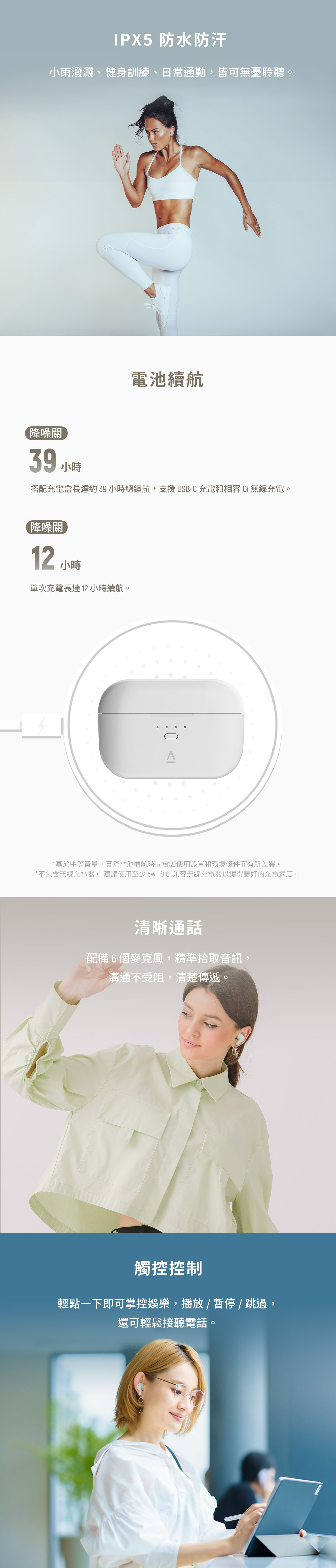 • 防汗防水|IPX5認證,小雨流汗不困擾