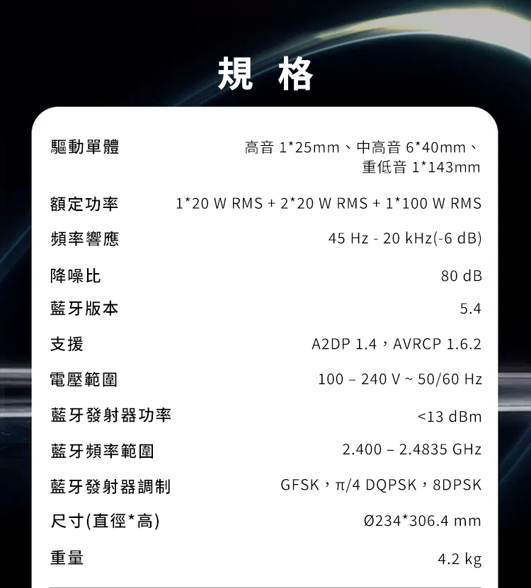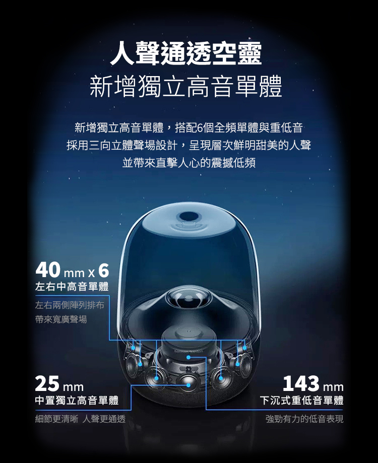 • 三向喇叭架構,更清晰更立體