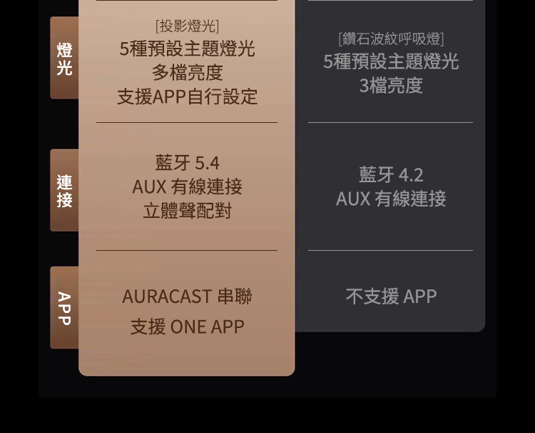 • 內建5種氛圍光自由切換