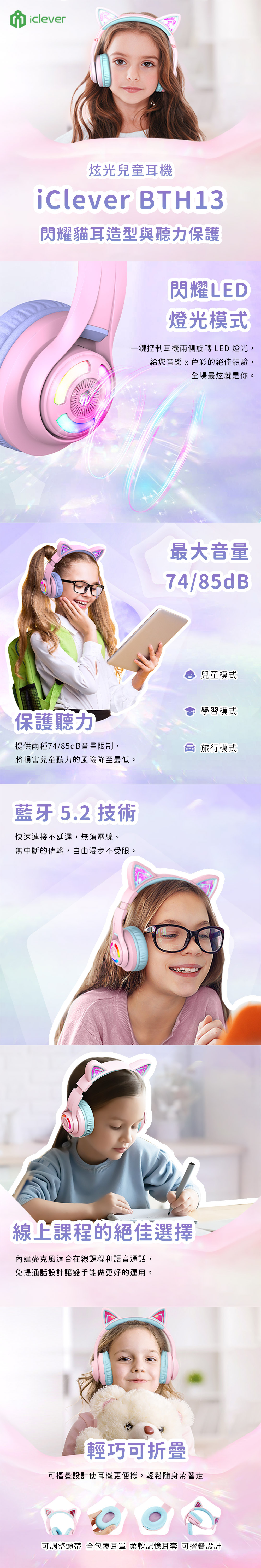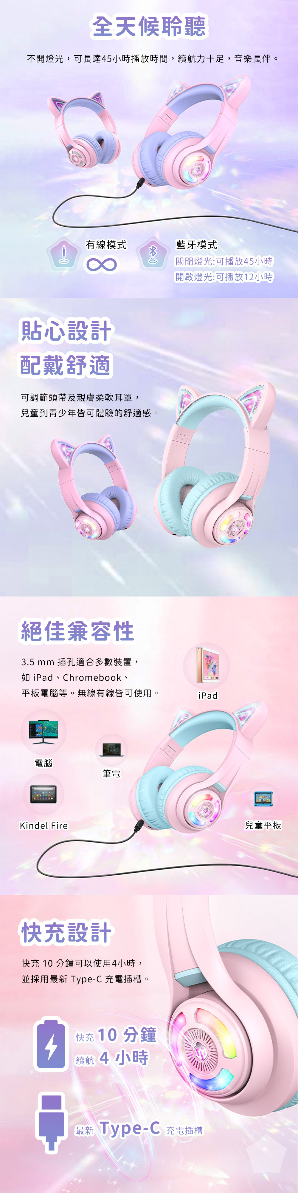 • LED燈光|可愛貓耳造型,炫麗燈光效果