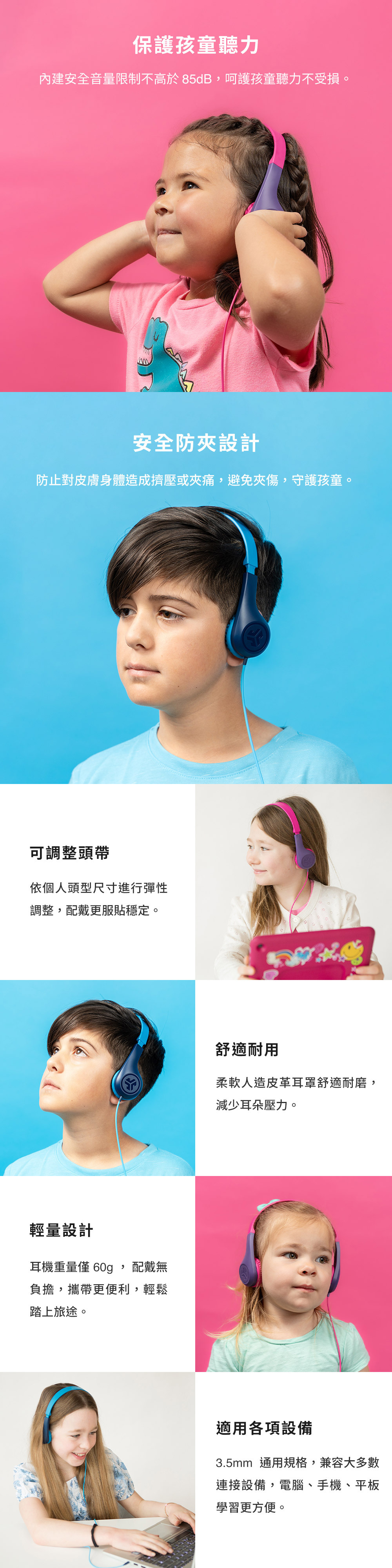 • 保護聽力|可調節85dB安全音量限制