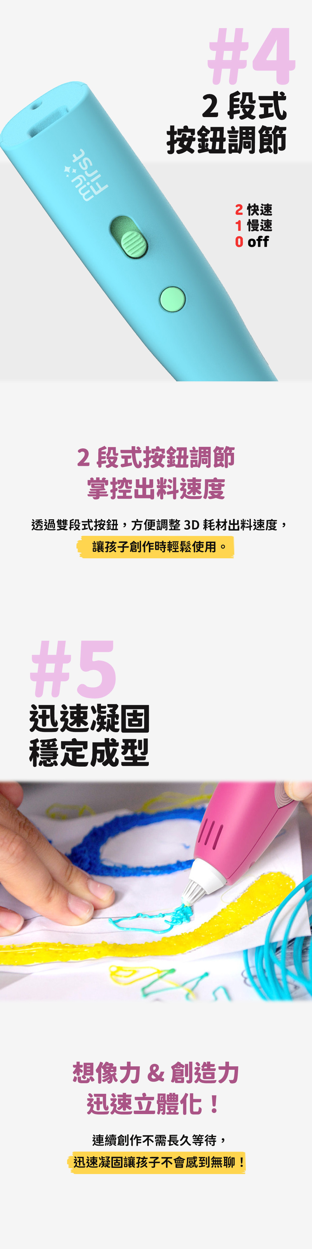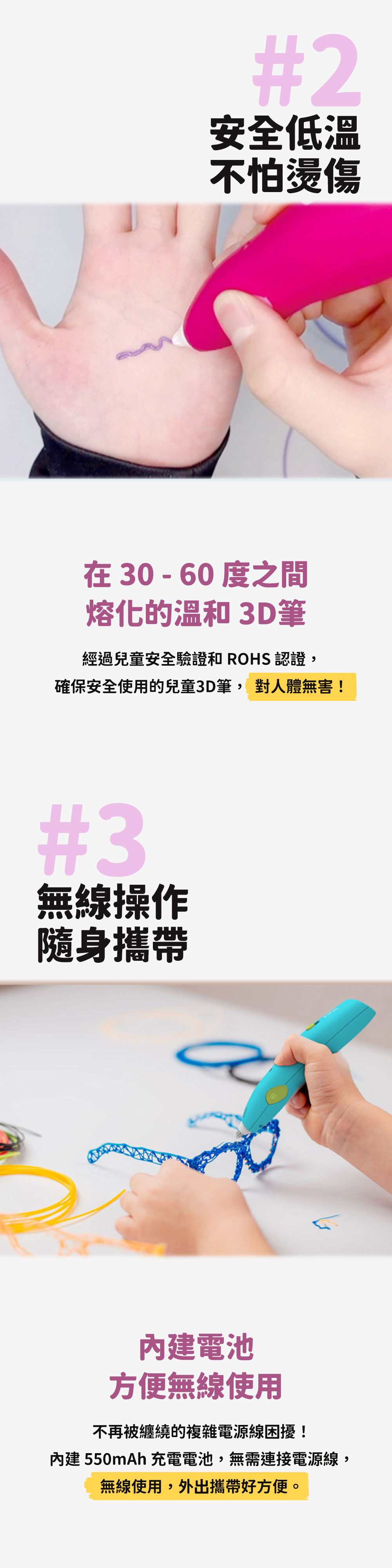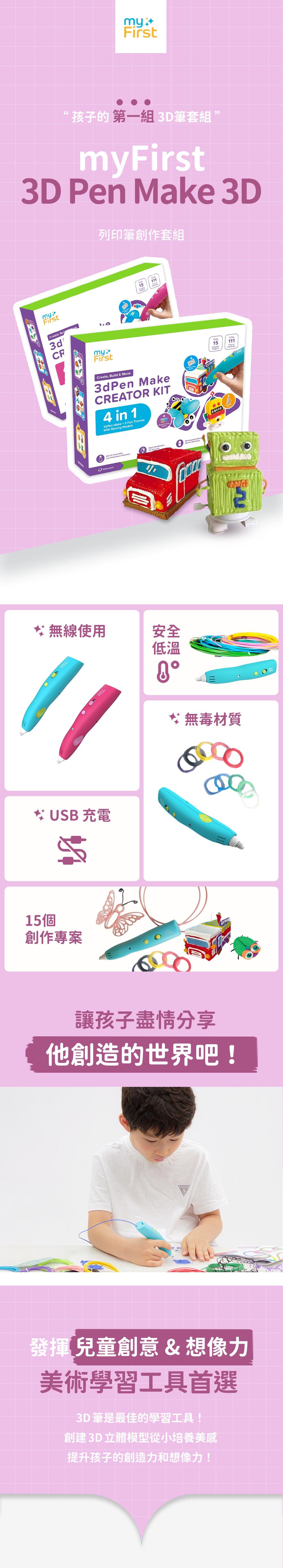 創意揮灑|創造3D立體物件,培養空間概念與美感 無線操作|不需連接電線即可用,外出攜帶方便 無毒材質|線材由觸摸無害的無毒環保的PCL材料製成 安全觸摸|內部設備的熱能不會滲透到外部,保護孩子 兒童安全|低溫材質更安心,小孩也能放心創作 三大主題|昆蟲、機器人、車輛組,內容多樣好玩 導引教學|含五張模板,照著畫就能完成作品 趣味作品|含動力配件,作品能動更有趣 培養能力|提升手部操作、空間感與創意想像力