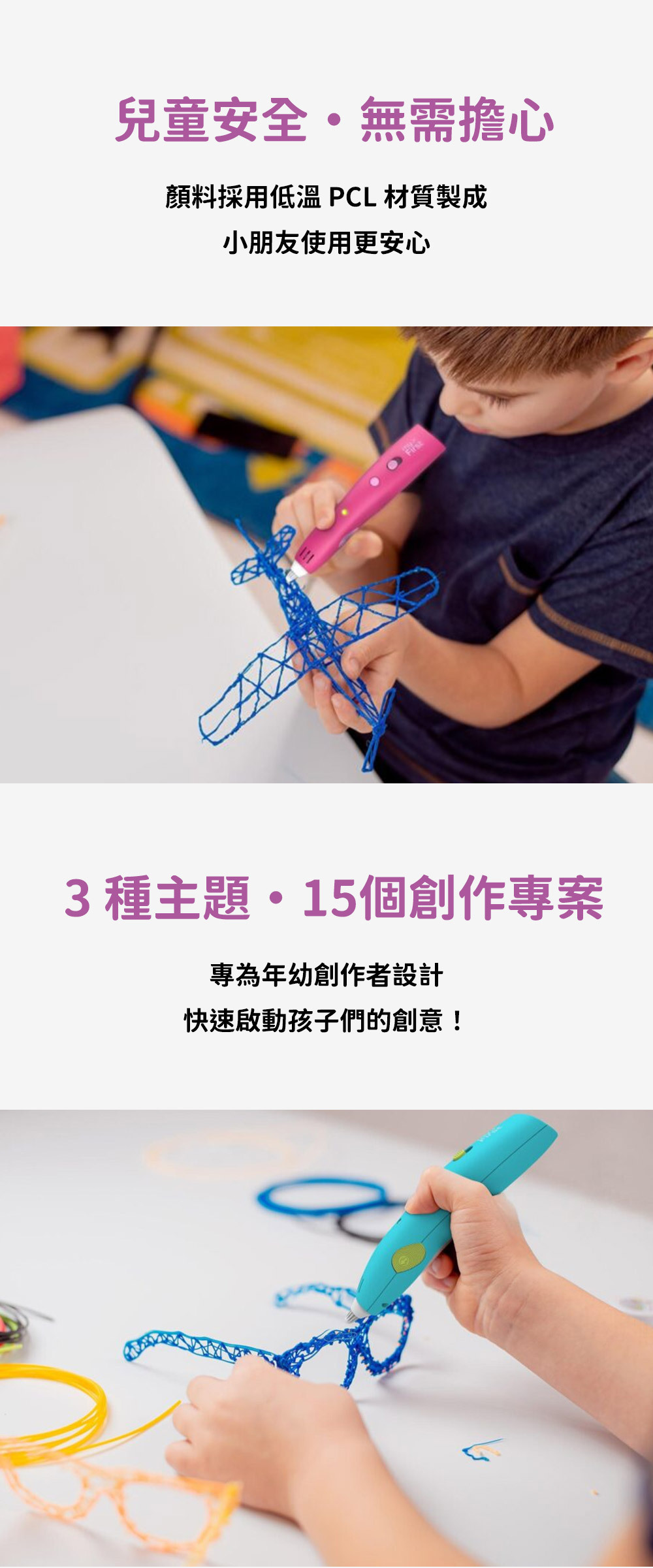 兒童安全|低溫材質更安心,小孩也能放心創作 三大主題|昆蟲、機器人、車輛組,內容多樣好玩 導引教學|含五張模板,照著畫就能完成作品 趣味作品|含動力配件,作品能動更有趣 培養能力|提升手部操作、空間感與創意想像力 完美加購|適合學習玩樂,也非常適合作為禮物