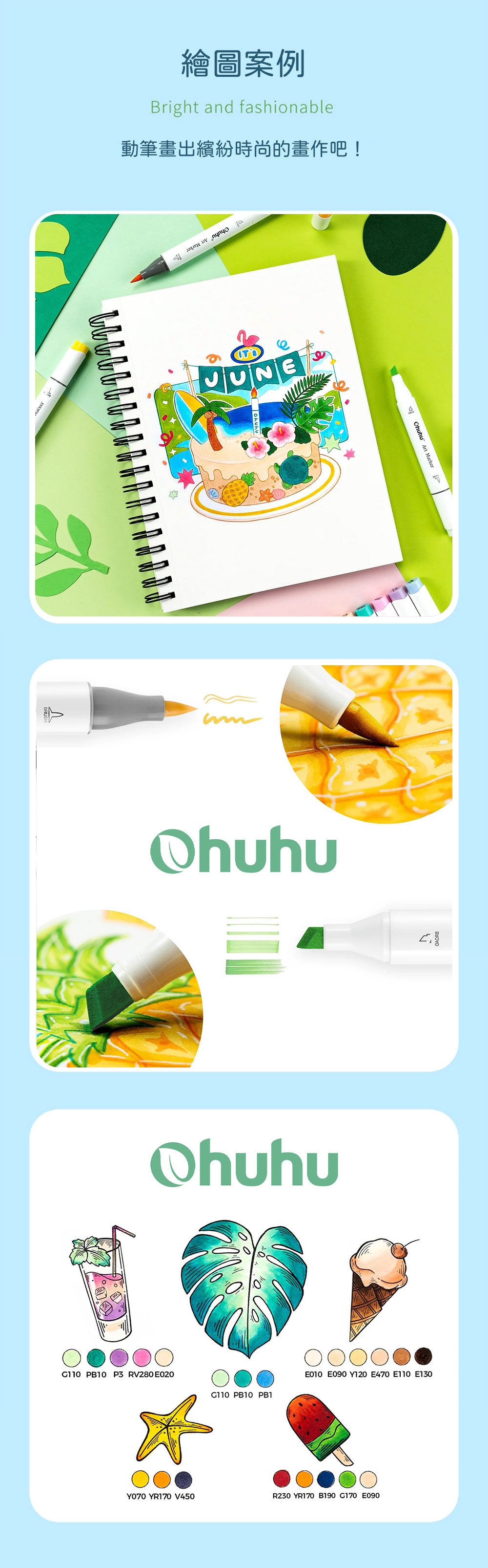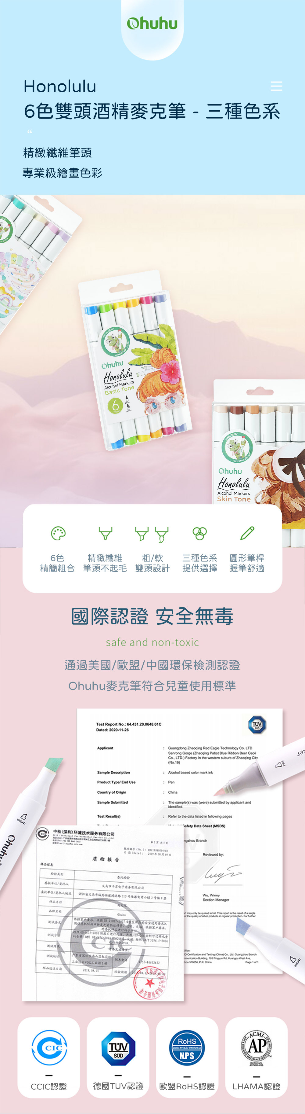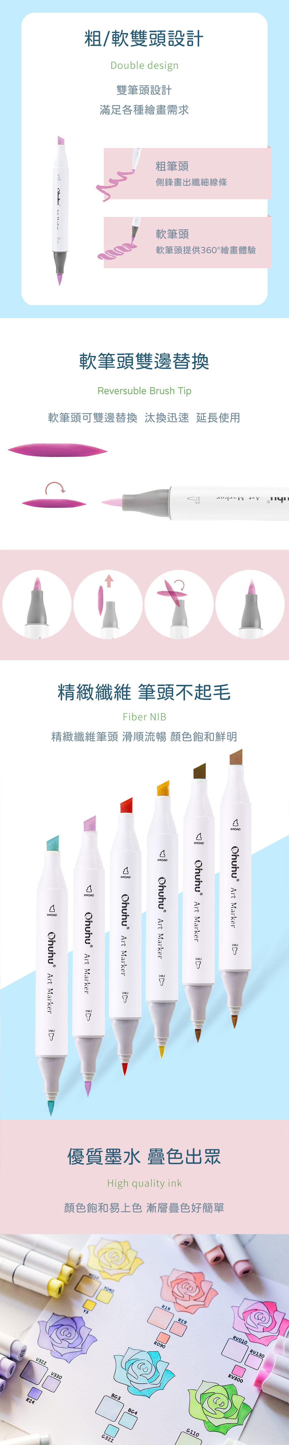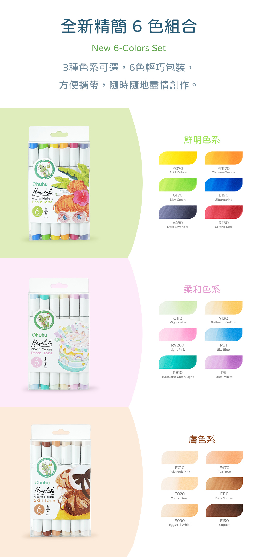• 產品型號:Ohuhu Honolulu 6色雙頭酒精性麥克筆套組