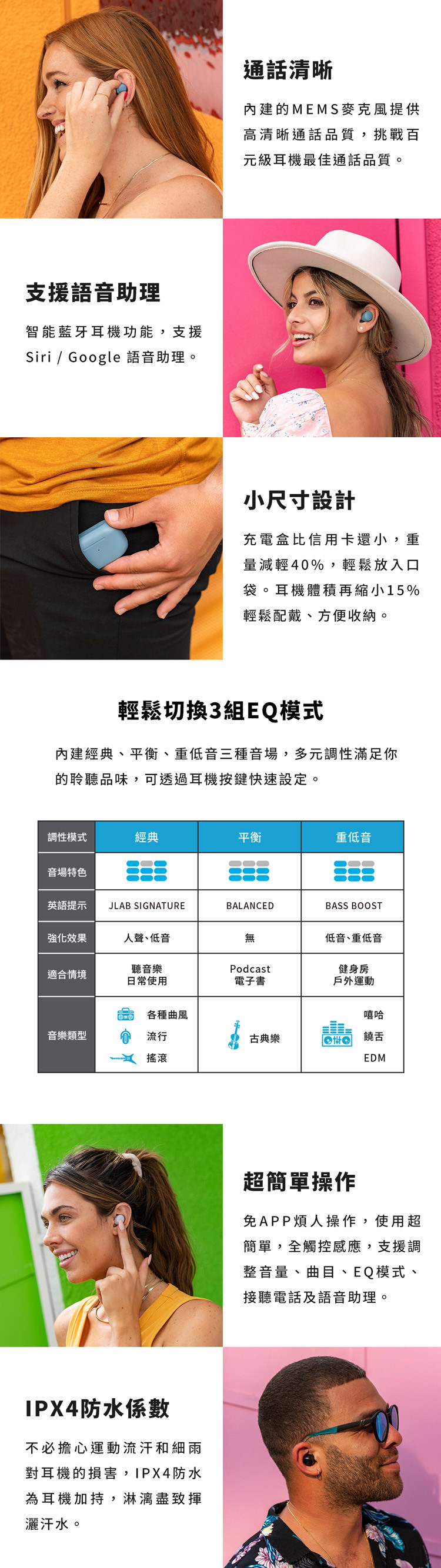 • 內建3組 EQ 音場簡易切換
