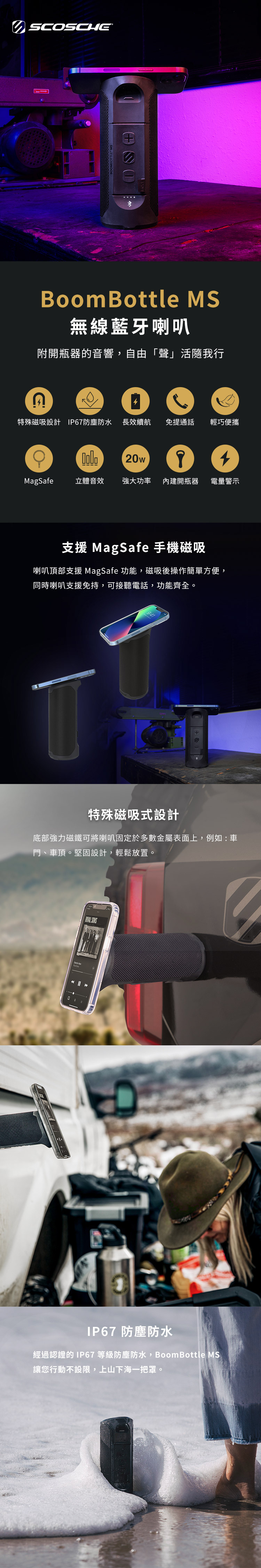 • 強力防水|IP67防塵防水、戶外活動不受限