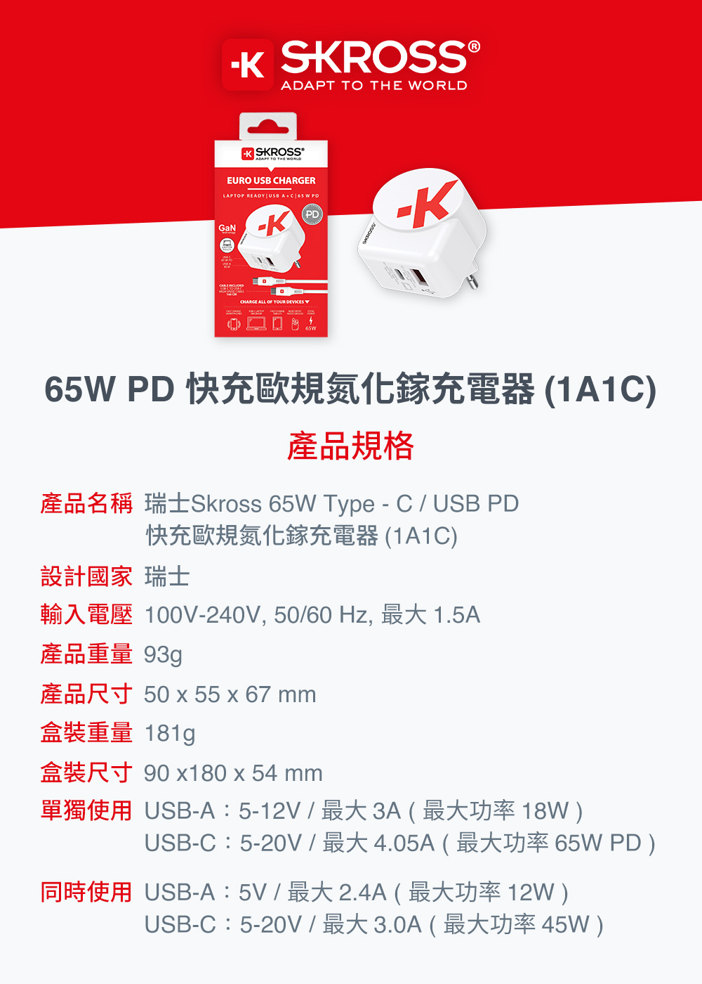 USB-A:5V/最大1.0 A (最大功率 5W)USB-C:5-20V/最大3.0 A (最大功率 60W)